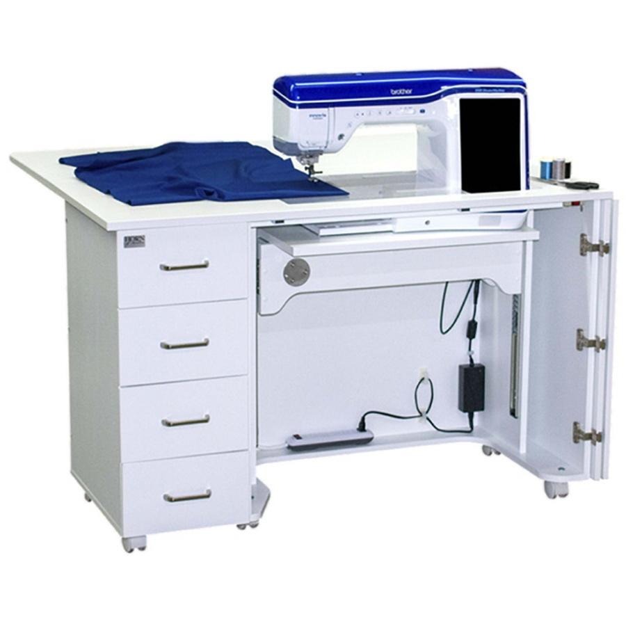 Loading... Please wait...Are you looking for a great compact sewing cabinet? The model 5400 offers four drawers featuring a 25" x 13" cut out that can hold most mid-size machine and bifold doors, so it closes up when not in use.