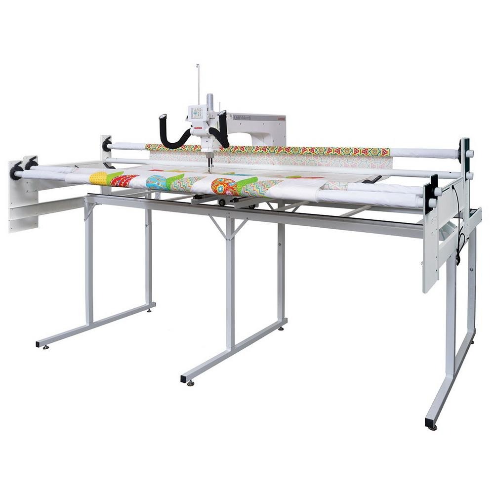 Loading... Please wait...The Quilt Maker delivers the next step in your quilt making journey. Janome, the leader in innovative products that have changed the sewing industry, offers a long arm format sewing and quilting machine to support the beginner quilter’s sewing studio. The Quilt Maker 18 offers 18” of quilting space. The Digital Tension Control system displays tension on the LCD touchscreen along with two stitch regulation modes: Precision and Cruise. Complete with Built-in Telescoping thread stand, and handlebars on the front with convenient magnetic strips. This machine exclusively utilizes the ProFrame 8 with a 2' optional extension kit to achieve a 10' foot full frame, and the bobbin winder is included! Step up to longarm quilting and into a new world of possibilities.